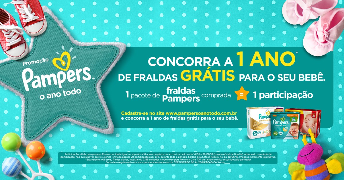 Já imaginou ganhar um ano de fraudas grátis para o seu filho? Com a Promoção Pampers o Ano Todo, você pode ter tudo, com a melhor frauda disponível no mercado. Como todos já sabem, a Pampers é sinônimo de qualidade e segurança para o seu bebê! Não fique de fora dessa, continue lendo, e saiba como participar!